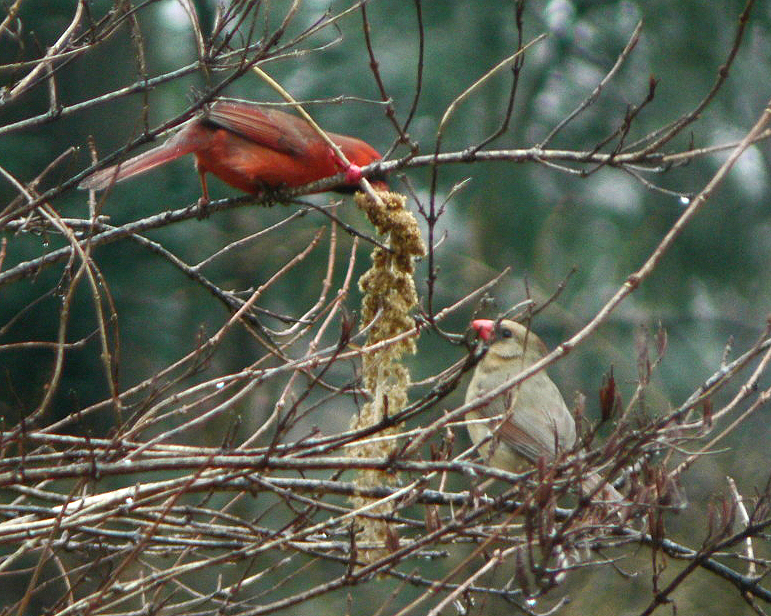 Cardinals with Spray Millet